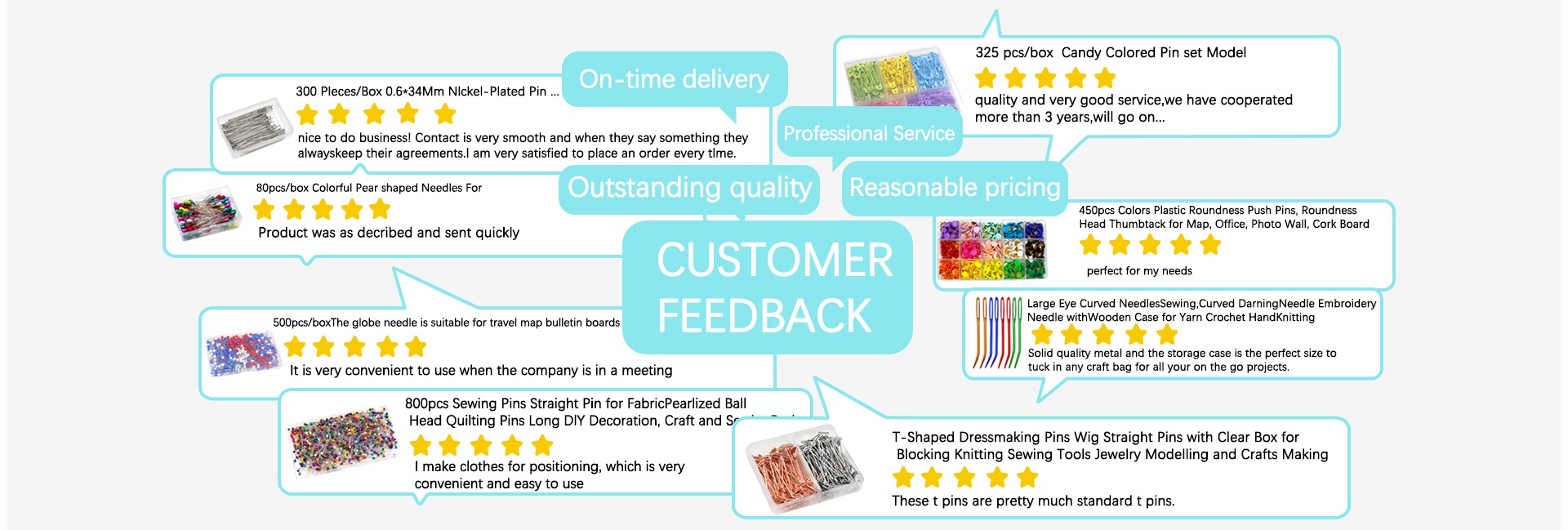 Caja de 300 alfileres de acolchado rectos de costura de plata niquelada de Metal 0,6*34Mm alfileres de cabeza plana para joyería fija